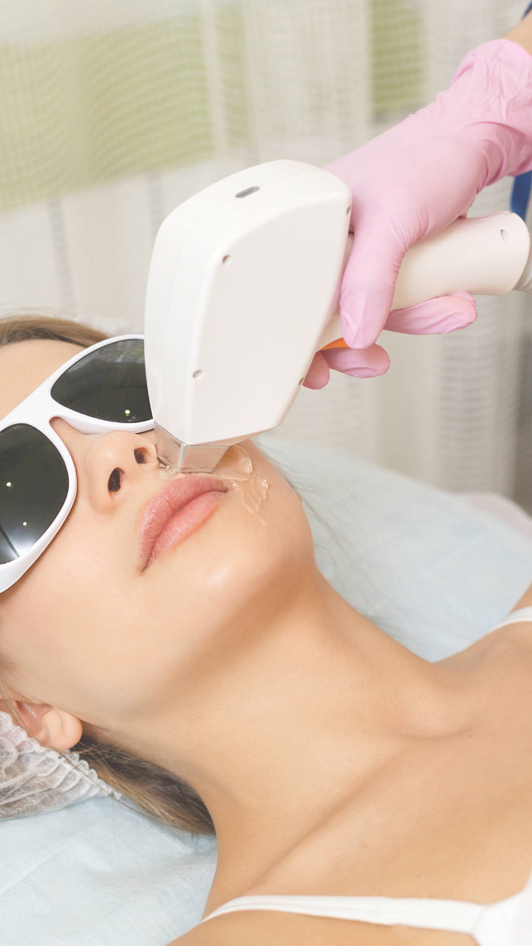 Laser hair removal involves several steps. Our certified professional will prep and clean the area and then give you protective glasses or goggles to wear during the procedure. They will then treat your skin with the laser. Your procedure might take a few minutes or up to an hour. It depends on the size of the area that is being treated. You might smell smoke and burning hair. This is normal and is the hair burning away from the laser’s heat.