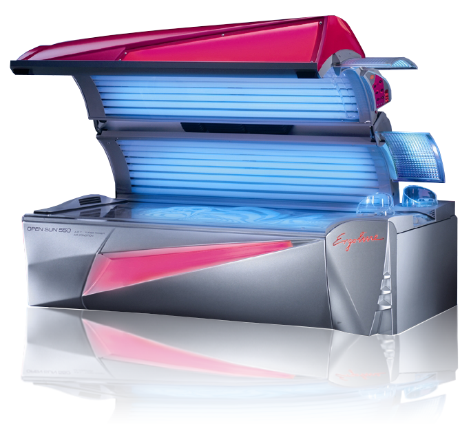 Immerse yourself into 15 minutes of pure relaxation! Featuring an open-air facial unit to give you optimum space. The Open Sun 550's unique design achieves the highest tanning results and is perfect for clients who dislike the “closed-in” feeling of traditional beds.Turbo powerMost powerful Ergoline high-pressure unitTwo UV-reflecting glass panelsAir conditioning and open areaMulti-relax base acrylic